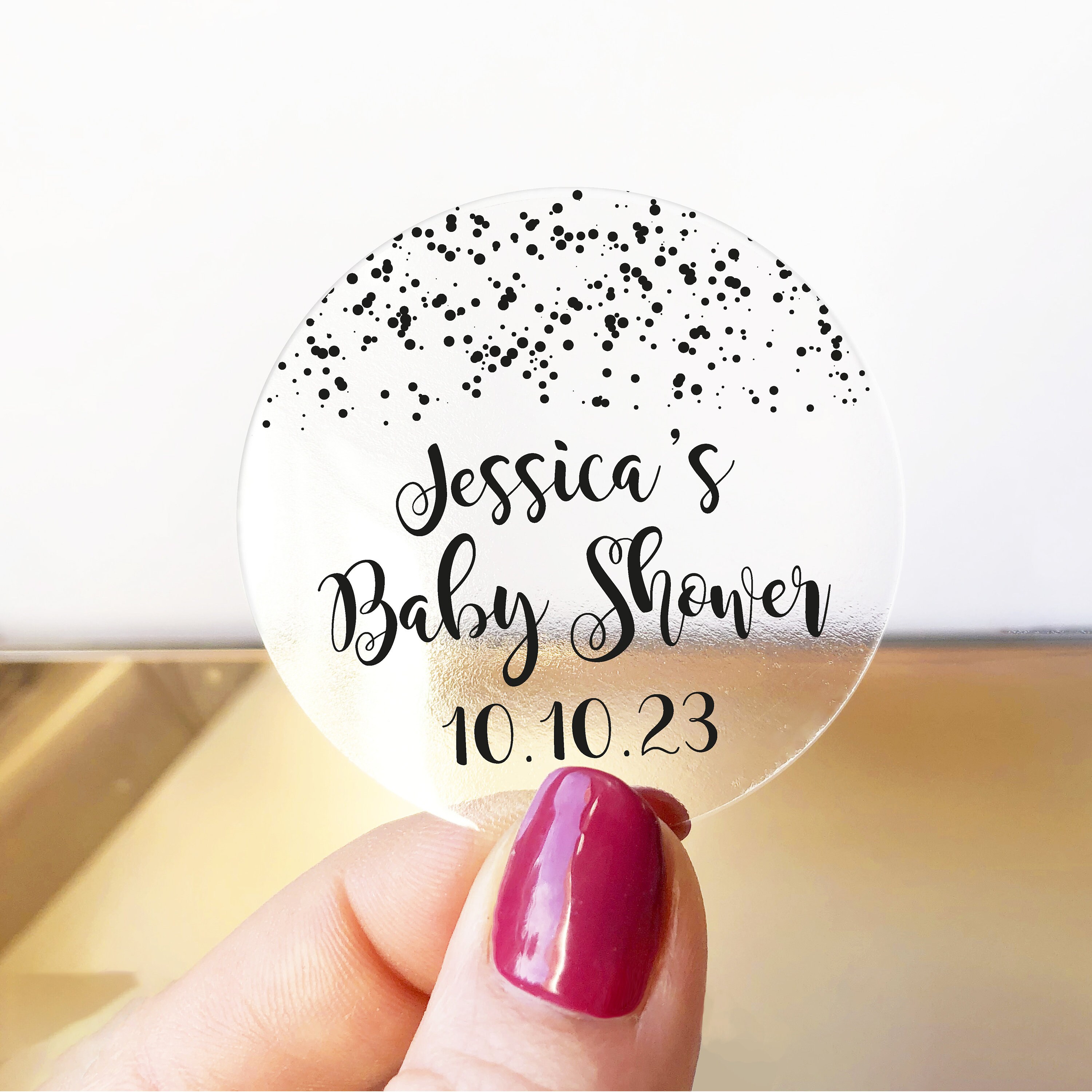 Baby Shower Stickers Sheet of 12 Stickers Sprinkled With ... Sprinkled with Love Baby Shower Stickers -Stickers come in a sheet of 12. (Quantity of 1 equals 12 stickers, quantity of 2 equals 24 stickers, etc.) -Stickers are a matte finish. -Stickers are 2.25 around...great for mason jar lids! -Watermark will be removed from printed stickers. -All stickers