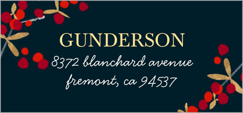 Mountain Ash Finch Deluxe Return Address Labels | Colorful Images Personalized address labels are also a quick and easy way to label your books, CDs, DVDs and other belongings to avoid mix-ups. The set includes 144 personalized self-stick address labels, each measuring 1-1/8" x 2-1/4". We'll print your labels with the name and address, message, or information you choose. Specify block or script and 1st line ... Address Label Template Gallery - Free Templates | Avery.com Our professional address label designs are free to use and easy to customize. They're perfect for creating address labels for party invitations, wedding invitations, save-the-dates, thank-you cards or just for everyday mailing and shipping. Use the same design across a variety of Avery labels, tags and cards to give your business or special ... Christmas Address Labels - Shutterfly Photo Books, Holiday Cards, Photo Cards, Birth Announcements, Photo Printing | Shutterfly. 50% Off Foil & Glitter Cards & More + Free Shipping on Cards - Code: BESTCARDS, Ends Sun, Oct 16 See promo details. Up To 50% Off Everything - No code needed, Ends Sun, Oct 16 See promo details. Free 8x11 Wall Calendar - Code: CALFORYOU, Ends Sun ... Holiday & Christmas Address Label Templates - Avery Find your favorite holiday or Christmas address label template below & personalize it to create beautiful address labels, shipping labels & return address labels. Mauve Fern Templates Add a beautiful subtle touch to your holiday mailings with this pretty mauve holiday address label template. 1" x 2-5/8" Address Label 2" x 4" Address Label